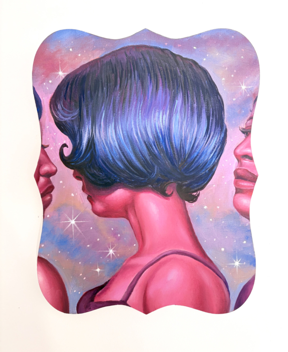 Lanise Howard is a visual artist who received her BFA from Otis College of Art and Design, working mainly in paint and mixed media. Howard was born in Southern California and raised partially in New York State. Her earliest years were spent from El Centro, CA to Los Angeles and the unique environments of both have shaped the way she sees the world. Her work is usually figurative, often narrative, with a surrealistic quality as well as a spiritual feeling that is often embodied. Previous work has been focused on censorship and assimilation, lost narratives, and hidden histories. Howard is interested in various topics such as, the esoteric, sacred geometry, ancient belief systems, the current digital world, and her experience as a woman of color. Recently she has been moving towards a fusing of these many inspirations and hopes to future investigate these phenomena in her work.