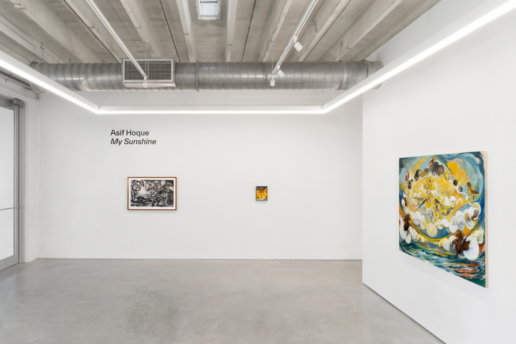 Mindy Solomon is pleased to present My Sunshine, featuring a new body of work by Brooklyn-based artist Asif Hoque in his third exhibition with the gallery. This chapter of Hoque’s career-long visual epic exalts the moment that its hero—the artist’s avatar, Golden Boy—first beholds his beloved, translating autobiography into mythic register.