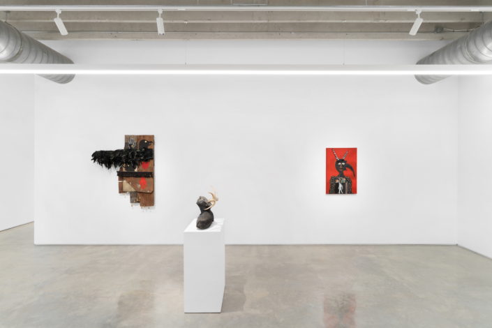 Art-making has been a therapeutic practice for me, and this work is the culmination of living and processing my experiences. Additionally, much of my art explores the collective identities and experiences that shape my life – those related to race, gender, class, and more. This show is a deeply personal exploration of my individual identity as a man approaching middle age, grappling with mortality and grief. The diverse range of mediums used in this exhibition – etchings, paintings, assemblage sculpture, and video art – come together to create a rich tapestry that expresses the full spectrum of emotions I’ve encountered over the past few years. My work remains focused on themes of identity, power, and myth, which are woven throughout this show. Myth-building is a dominant element in this body of work, as I’ve created small myths and characters to serve as metaphors for myself and my experiences.”