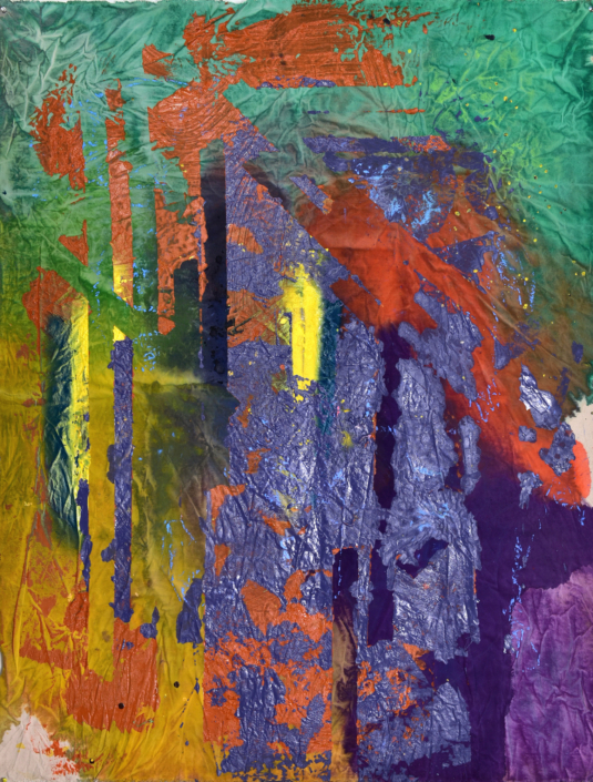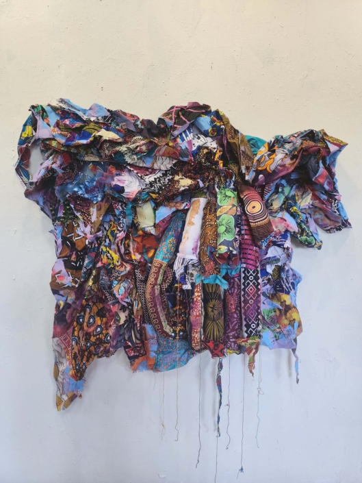 My practice has since expanded. I hand-dye fabrics, experiment with batik, and layer gestures to shift the surface of the picture plane. Through fractured patterns, overlapping marks, and atmospheric color, the works move between painting and object, between the natural and the synthetic.