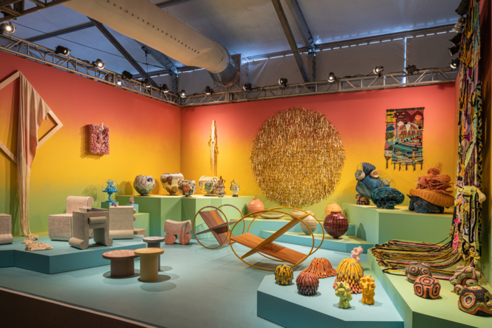 Mindy Solomon Gallery is pleased to present a maker focused presentation that encapsulates the notion of the beginning of time or “Dawn”. Presented in a palette of yellows, oranges, pinks and reds, the build out will feature a multi layered surround stacked display.